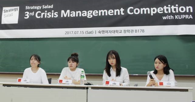 기업 위기관리 커뮤니케이션 컨설팅사 스트래티지샐러드(대표 정용민)는 지난 15일 숙명여자대학교에서 열린 ‘제3회 위기관리 공모전’을 성황리에 마쳤다고 밝혔다.
